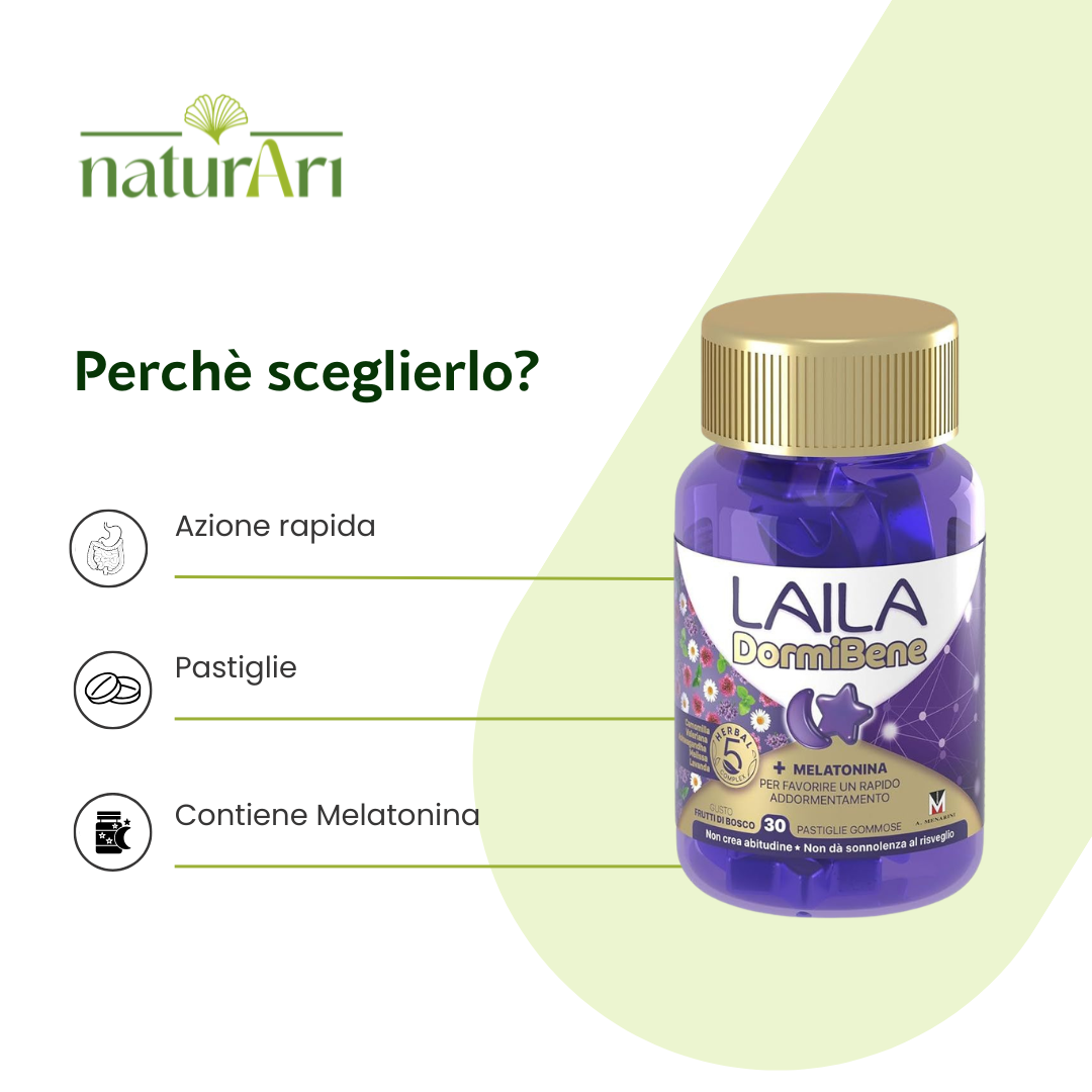 Integratore alimentare con vitamina B6, melatonina ed estratti di erbe, che aiuta a prendere sonno rapidamente.